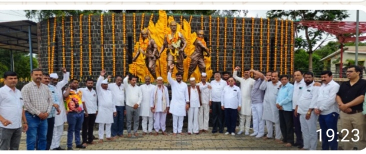 सिन्नर ( प्रतिनिधी )सिन्नर शहरातील तहसील कार्यालया समोरील क्रांतिस्थळावरील आद्य क्रांतिकारक उमाजीराजे नाईक, आद्य क्रांतिकारक राघोजी भांगरे व आद्य क्रांतिकारक भागोजी नाईक ह्या महापुरुषांच्या त्रिशिल्प स्थळी म.रा.रामोशी महासंघ, आलुतेदार बलुतेदार महासंघ महामित्र परिवार व आद्यक्रांतिकारक राघोजी ब्रिगेड यांच्या संयुक्त विद्यमाने सिन्नर येथिल मोठ्या उत्साहात क्रातीवीर उमाजी राजे नाईक यांची जयंती सजारी झाली* आद्य क्रांतिकारक उमाजी राजे नाईक यांच्या २३४ वी जयंतीनिमित्त निमित्ताने यांच्या त्रिशिल्पाला पुष्पहार आर्पण करण्यात आले.*