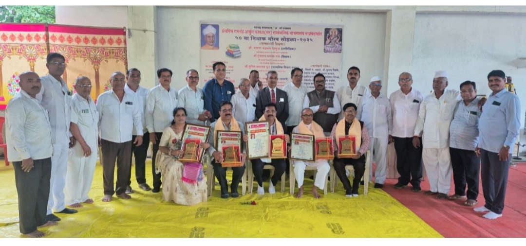नाशिक:-(प्रतिनिधी )ग्रंथालय हे खऱ्या अर्थाने देवालय आहे. एक पुस्तक आपला मित्र बनला पाहिजे. देवालयाबरोबरच पुस्तकेही आपल्या घरात असली पाहिजेत. सुसज्ज ग्रंथालयामुळेच गावाची समृद्धीकडे वाटचाल होते, असे प्रतिपादन प्राचार्य डॉ.पी.व्ही.रसाळ यांनी केले . मखमलाबादच्या ग्रंथमित्र रामचंद्र अर्जुन काकड (सर) सार्वजनिक वाचनालयाच्या सुवर्ण महोत्सवी शिक्षक गौरव समारंभप्रसंगी प्रमुख अतिथी म्हणून ते बोलत होते. वाचनालयाचे अध्यक्ष रामदास पिंगळे अध्यक्षस्थानी होते. प्राचार्य डॉ.रसाळ पुढे म्हणाले की, ज्ञान आणि विज्ञान आपल्याला मातीशी जोडायला शिकवतं. कौशल्य आणि अध्यात्म यामुळे आपण घडतो. पुस्तकं जरी मुकी असली तरी ती माणसाला बोलायला शिकवतात. वाचनाने मनाची आंघोळ होते आणि माणूस ताजातवाना होतो. विद्यार्थ्यांना त्यांच्यातील क्षमतांची जाणीव करून देणे म्हणजे खरे शिक्षण होय. ज्ञानदानाचे कार्य करणाऱ्या शिक्षकांचा सन्मान म्हणून आपण करत असलेला शिक्षकांचा गौरव महत्त्वपूर्ण आहे, असेही ते म्हणाले. मखमलाबाद परिसरातील नारायणराव मानकर प्रायमरी स्कूलच्या शिक्षिका उज्ज्वला देशमुख, छत्रपती शिवाजी महाराज विद्यालयाचे संगीत शिक्षक तुकाराम तांबे, आदर्श प्राथमिक शाळेचे माध्यमिक विभाग प्रमुख सुनील कुटे यांना ‘आदर्श शिक्षक पुरस्कार’ शाल, सन्मानपत्र, सन्माचिन्ह आणि ग्रंथभेट देत सन्मानित करण्यात आले. तसेच सार्वजनिक वाचनालयाचा आदर्श शिक्षक पुरस्कार जाहीर झाल्याबद्दल छत्रपती शिवाजी महाराज विद्यालयाचे प्राचार्य संजय डेर्ले, सूत्रसंचालक रवींद्र मालुंजकर यांचा विशेष सत्कार करण्यात आला. शिक्षक गौरव समारंभासाठी आदर्श शाळेचे मुख्याध्यापक जनार्दन गायकवाड यांनी पाच हजार, छत्रपती शिवाजी महाराज माध्यमिक आणि उच्च माध्यमिक विद्यालयाचे प्राचार्य संजय डेर्ले यांनी त्यांच्या वडिलांच्या स्मरणार्थ अकरा हजार, प्रा.विकास थोरात यांनी पाच हजार रुपयांची देणगी वाचनालयाला सुपूर्द केली. संचालक गोकुळ काकड यांनी प्रास्ताविक केले. कार्यवाह शंकर पिंगळे यांनी आपल्या मनोगतात शिक्षक गौरव समारंभाची वाटचाल सांगितली. मखमलाबाद विद्यालयाच्या गीतमंचाने स्वागतगीत सादर केले. अतिथी परिचय वाचनालयाचे उपाध्यक्ष संदीप धात्रक तर सत्कारार्थी परिचय संचालक राकाशेठ माळी, संजय फडोळ, प्रताप काकड यांनी करून दिला. ज्येष्ठ संचालक निवृत्ती महाले, देवराम पवार, सुभाष काकड, सुभाष तिडके, संजय गामणे, माजी नगरसेवक पुंडलिक खोडे, ज्ञानेश्वर पिंगळे, हभप रमेशबाबा काकड, मखमलाबाद सोसायटीचे सभापती प्रकाश काकड, उपसभापती विक्रम कडाळे, शरद काकड, हभप आबा मुरकुटे, नरेंद्र मुळाणे, माजी नगरसेवक दामोदर मानकर, मुख्याध्यापिका हेम