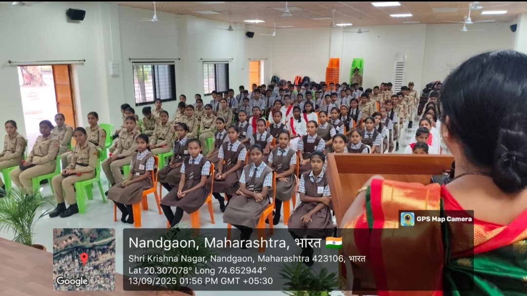 बातमी नांदगाव (वार्ताहार )”महिला सबलीकरण ” काळाची गरज ओळखून व्ही. जे . हायस्कूल नांदगाव येथे 13 सप्टेंबर 2025 रोजी NCC विभागाचे वतीने “महिला सबलीकरण आणि नई रोशनी स्कीम “या अत्यंत महत्त्वपूर्ण विषयावर कार्यक्रम उत्साहात संपन्न झाला. या कार्यक्रमासाठी प्रमुख अतिथी म्हणून समाजसेविका तसेच अडव्होकेट विद्याताई कसबे यांची उपस्थिती लाभली. त्यांच्या सोबत शाळेचे मुख्याध्यापक श्री. लक्ष्मीकांत ठाकरे आणि क्रीडा शिक्षिका श्रीमती.सुनीता देवरे मॅडम उपस्थित होत्या.