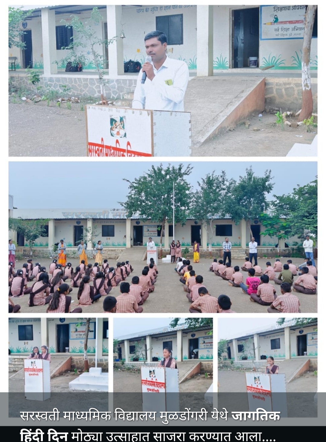 मुळडोंगरी (प्रतिनिधी) आपल्या भारत देशाला स्वातंत्र्य मिळाल्यानंतर 14 सप्टेंबर 1949 रोजी भारतीय संविधानाने हिंदी भाषेला राष्ट्रभाषेचा दर्जा दिला व तेव्हापासून 14 सप्टेंबर हा दिवस जागतिक हिंदी दिन म्हणून साजरा केला जातो. त्याचप्रमाणे विद्यालयातही हिंदी दिवस साजरा करण्यासाठी संस्थेचे संस्थापक मा.श्री एस. जी. राठोड साहेब, तसेच सचिव मा. श्री सिद्धांत दादा राठोड यांच्या अध्यक्षतेखाली विद्यालयाच्या मुख्याध्यापिका श्रीमती बोरसे एस. एस. मॅडम यांच्या मार्गदर्शनाने कार्यक्रम घेण्यात आला.इयत्ता दहावीतील विद्यार्थिनी कुमारी गायत्री आव्हाड व कुमारी दिशा मोहिते यांनी सूत्रसंचालन केले. हिंदी दिनाचे महत्त्व विद्यार्थी – विद्यार्थिनींनी आपल्या भाषणाद्वारे पटवून दिले व हिंदी विषयाचे शिक्षक श्री दराडे सर यांनी हिंदी दिनाच्या निमित्ताने हिंदी भाषेची महत्त्वपूर्ण अशी माहिती विद्यार्थ्यांना आपले मनोगत व्यक्त करताना सांगितली. शेवटी कार्यक्रम हम सब का अभिमान है हिंदी, भारत की शान है हिंदी.या जयघोषात संपन्न झाला.