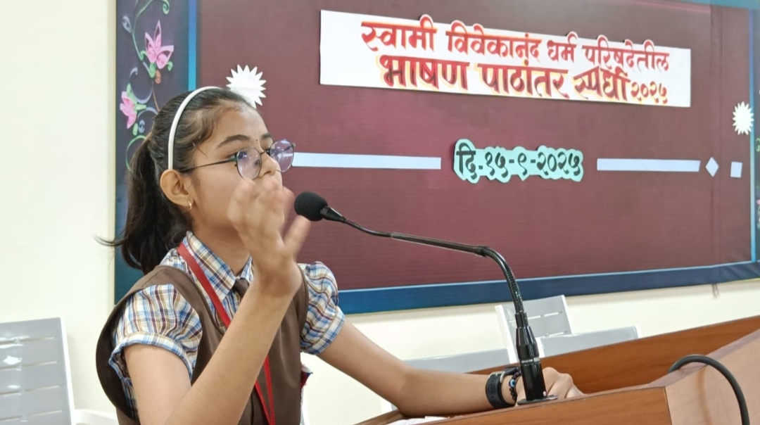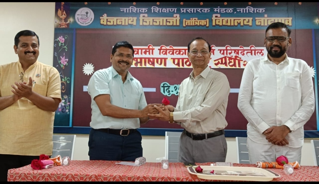 .स्पर्धेत इ. ५वी ते ७वी गटात ( सकाळसत्र)प्रथम- कु.प्रांजली भाबड द्वितीय- कु.वेदश्री पाटील तृतीय- कु.भूमी बनबेरूउत्तेजनार्थ कु.आनंदी बच्छाव कु.यामिनी चव्हाण इ.८ वी ते १०वी गटात( सकाळसत्र )प्रथम क्र .- कु.साक्षी काळे द्वितीय क्र.कु.श्रावणी बोरसे तृतीय क्र- कु.वेदश्री कदम उत्तेजनार्थ – कु.निशांतचव्हाण कु.मृण्मयी दंडगव्हाळ इ.८ वी ते १०वी गटात( दुपारसत्र )प्रथम क्र-कु.सिद्धांत धायवटे द्वितीय क्र . कु.सोहम कुलथे तृतीय क्र- कु.विराज सरोदे उत्तेजनार्थ कु.सोहम गायकवाड , कु.ओम बाळासाहेब यांनी बक्षिसे मिळवली समारोपाच्या भाषणात श्री. दत्तराज छाजेड यांनी स्वामी विवेकानंद यांनी जगाला भारताची वेगळी ओळख करून दिली असे सांगितले तर परीक्षक श्री अमोल अहिरे यांनी सांगितले की स्वामी विवेकानंद ही व्यक्ती नसून ती वृत्ती आहे व ती आपण जोपासली पाहिजे .स्पर्धा यशस्वी होण्याकरिता स्पर्धाप्रमुख सौ.रुपाली झोडगेकर ,श्री कुणाल जोशी, श्री प्रवीण अहिरे शाळेतील इतर सर्व सहकारी शिक्षक व शिक्षकेतर कर्मचारी यांनी सहकार्य केले..
