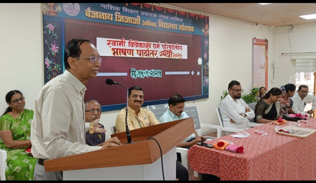 नांदगाव (वार्ताहार ) “शिक्षण हे केवळ पुस्तकी ज्ञान नव्हे, तर ते चांगले माणूस आणि उत्तम चरित्र घडवणारे असावे “- स्वामी विवेकानंद दि.१५ सप्टेंबर २०२५ गुरुवार रोजी व्ही.जे. हायस्कूल नांदगाव शाळेत स्वामी विवेकानंद यांचे शिकागो धर्म परिषदेतील एकता आणि बंधुतेचा संदेश देणारे व जागतिक कीर्तीचे ऐतिहासिक भाषण पाठांतर स्पर्धा उत्साहात संपन्न झाली. ही स्पर्धा ५ वी ते ७ वी व८ वी ते १० वी अशी दोन गटात स्पर्धा घेण्यात आली.