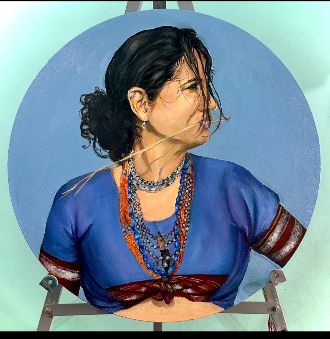 उरण दि १६(विठ्ठल ममताबादे )शायनी कलरने आयोजित केलेल्या तिसऱ्या राष्ट्रीय स्पर्धा आणि प्रदर्शनासाठी तरुण चित्रकार वरद खुशाली विलास गावंड यांचे चित्र निवडले गेले आहे. हे प्रदर्शन २५ ते २८ सप्टेंबर २०२५ दरम्यान कर्नाटक चित्रकला परिषद, बेंगळुरू गॅलरी येथे आयोजित केले जात आहे. वरदच्या ‘शहरांच्या पलीकडे’, (The Beyond Cities) या चित्र मालिकेतील हे चित्र आदिवासी जीवनशैलीचे सुंदर व्यक्तिचित्र आहे. या चित्रात एका मोहक आदिवासी मुलीचे चित्रण आहे. मुलीच्या ओठांमध्ये दाबलेले गवताचे पाते, वाऱ्यात वाहणाऱ्या तिच्या वेण्या आणि पारंपारिक मणी तिला निसर्गाच्या सौंदर्याचे प्रतीक दिसतात.
